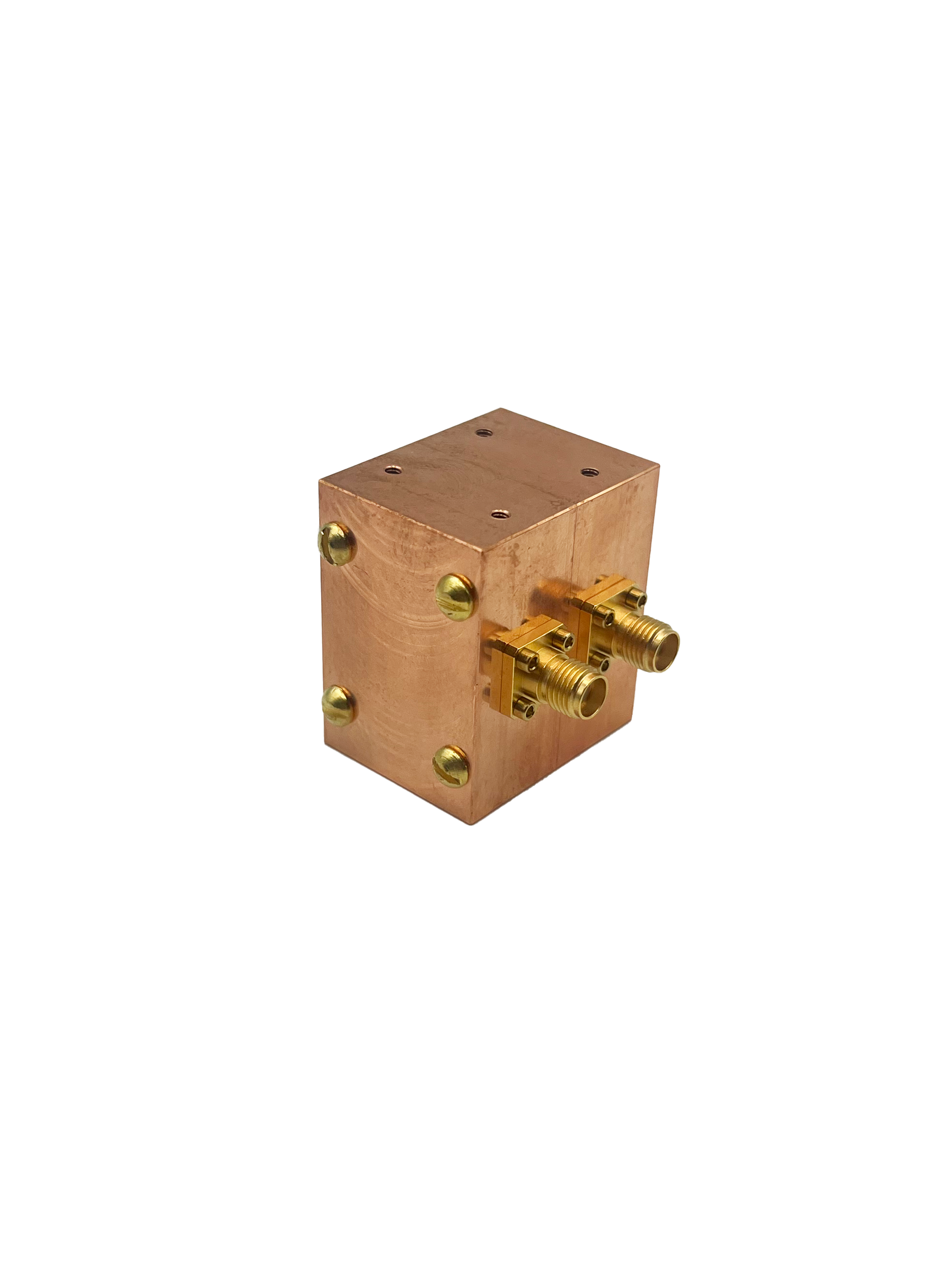 - Non-magnetic SMA connectors (QMC-CRYOCON-FSMA) and pins which can be adjusted to set coupling to the resonator.